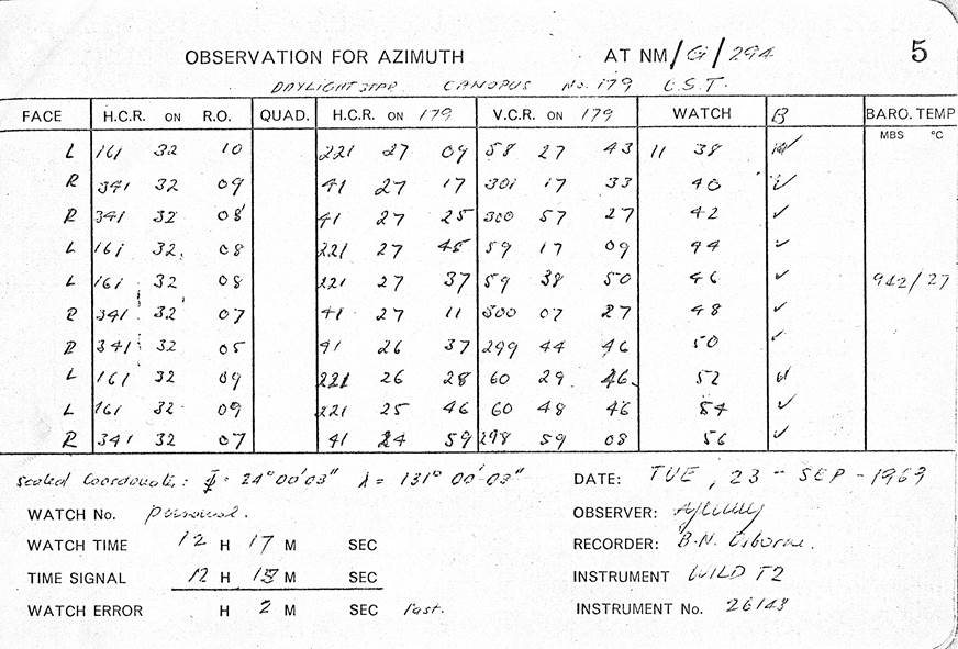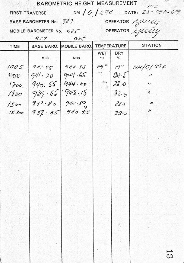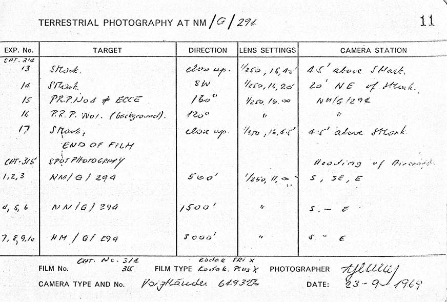 NMG 294, 23 Sep 1969, Copy of the Fieldbook