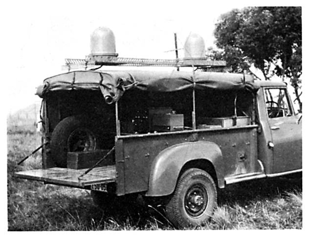 Each vehicle in the field party is equipped with a 25-Watt H.F. Transceiver which provides not only ground to ground intercommunication but also ground to aircraft facilities in the event of loss of signal from the master stations in the aircraft.
