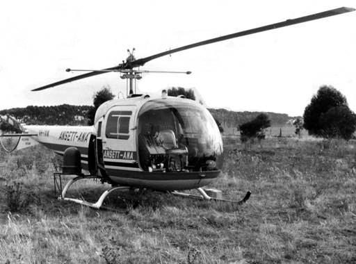 For these trials, a Bell 47J helicopter was obtained on charter.