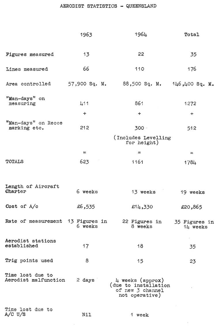 In April (1964) field operations commenced in southern Queensland, but from the outset the equipment performed unsatisfactorily and adjustments proved to be beyond the capability of the field personnel. A technician from the servicing agency joined the party for two weeks but he also was unable to make the equipment function using only field facilities. The Aerodist was returned to Melbourne for workshop service.