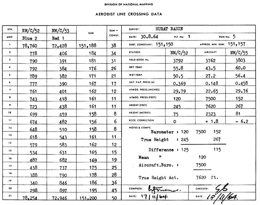 These were used to further check equipment serviceability and to compare the length of an Aerodist measurement with that of a Tellurometer when using similar ray paths.