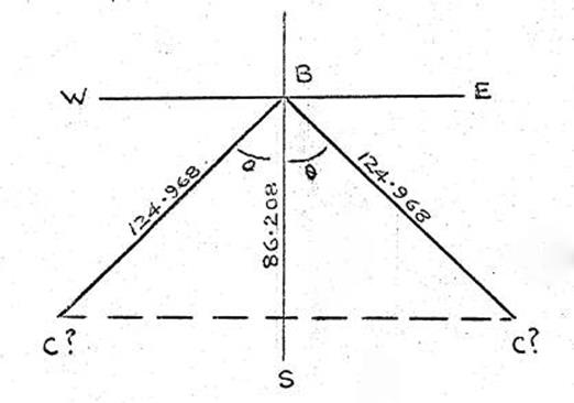 The broken line in Figure 12.11(b) shows what happens when the bubble is moved to a plus reading with footscrew; it is clear that the ascending East star will arrive late and the correction necessary to give the exact time it reached 35° altitude will be Minus. Just as obviously, if the bubble was moved to a minus reading with the footscrew, the star will arrive early and the correction will be Plus.