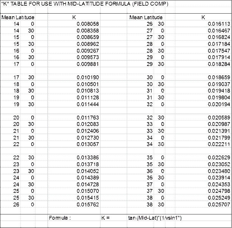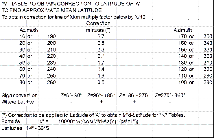 "m" is affected by the Latitude, also the Declination and Altitude of the star, therefore "m" from the table must be multiplied by a factor "k" obtained from :