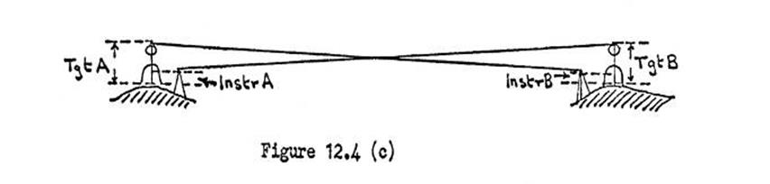 A series of observations are taken on each star as explained in 3.13. Observations should commence no earlier and cease no later than 3 minutes from transit, with the attempt being made to have 3 observations on each side of transit. The observations are all on the same theodolite face and are balanced with similar observations on another star of equivalent altitude which bears 180° from the star initially observed. Figure 12.12(a) illustrates the method.